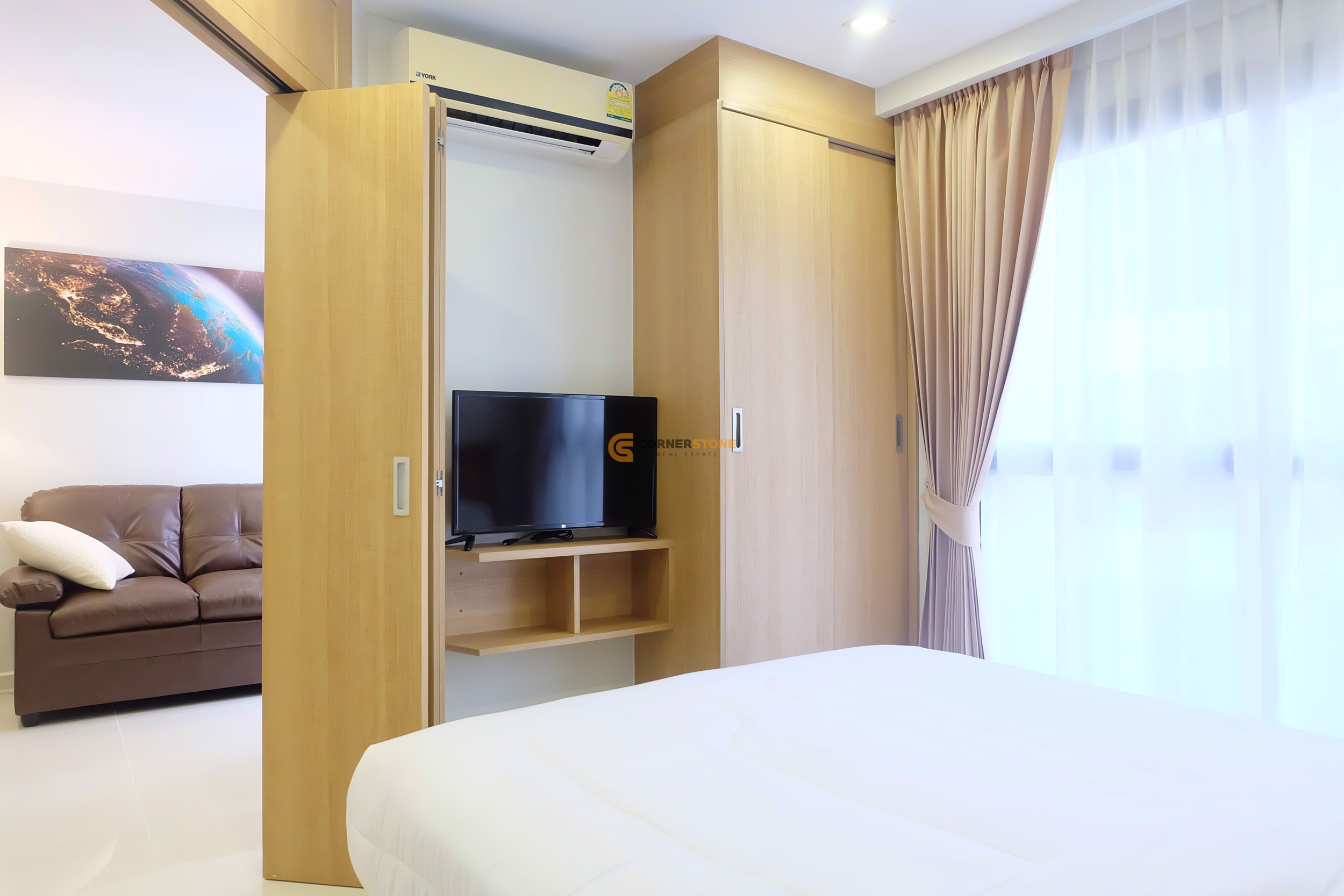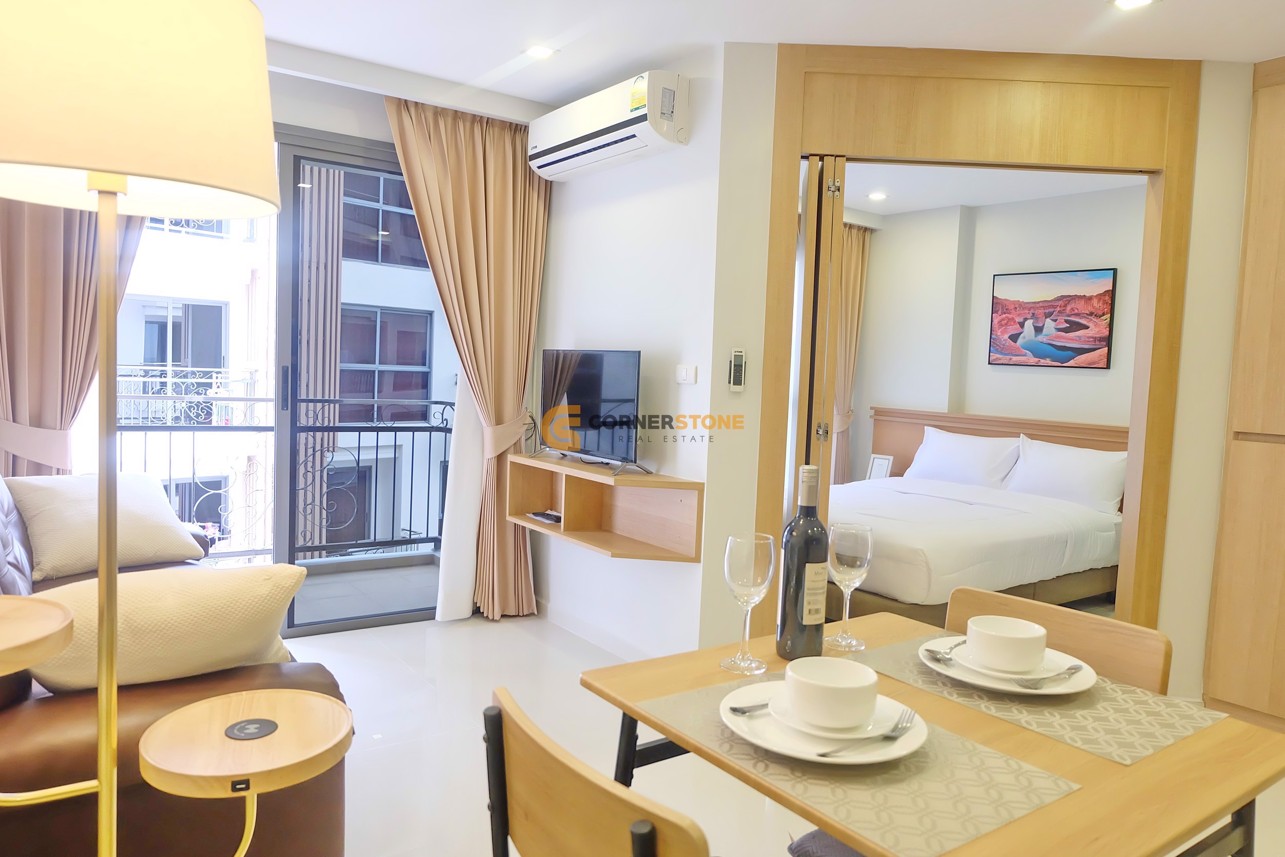 It is inside a condominium project called City Garden Pratumnak. The Condo has a living area spanning 32 Sq.m with a layout providing a total of 1 Bedroom and 1 Bathroom. From this unit you have City Views. The property will come Fully Furnished. and also features Balcony, Fully Air Conditioned,