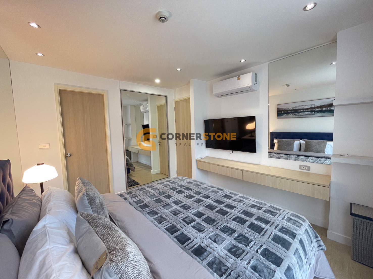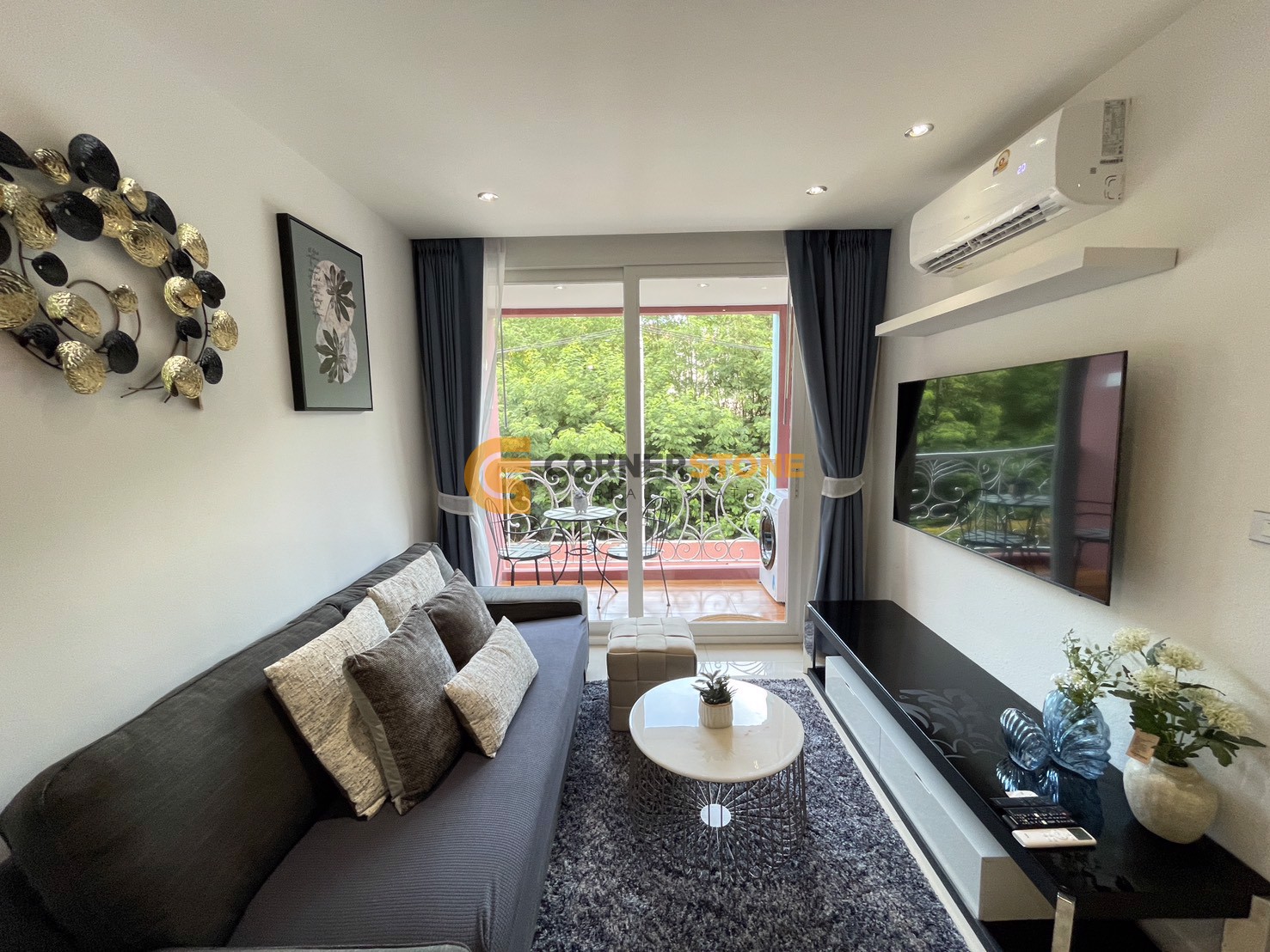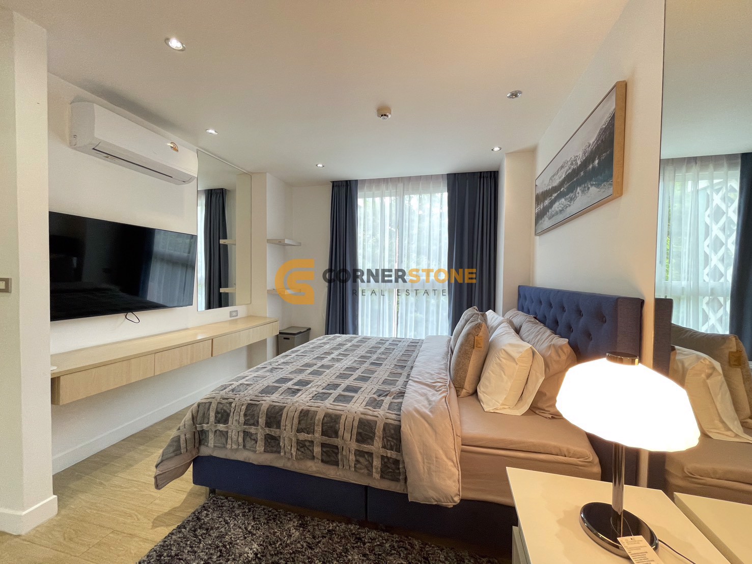 It is inside a condominium project called Grande Caribbean Condo Resort Pattaya. The Condo has a living area spanning 37 Sq.m with a layout providing a total of 1 Bedroom and 1 Bathroom. From this unit you have Garden Views. The property will come Fully Furnished. and also features Balcony, Fully Air Conditioned,
