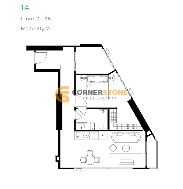 It is inside a condominium project called Tait Pattaya. The Condo has a living area spanning 62.7 Sq.m with a layout providing a total of 1 Bedroom and 1 Bathroom. From this unit you have Partial Sea Views. The property will come Fully Furnished. and also features Corner Unit, Balcony, Fully Air Conditioned,