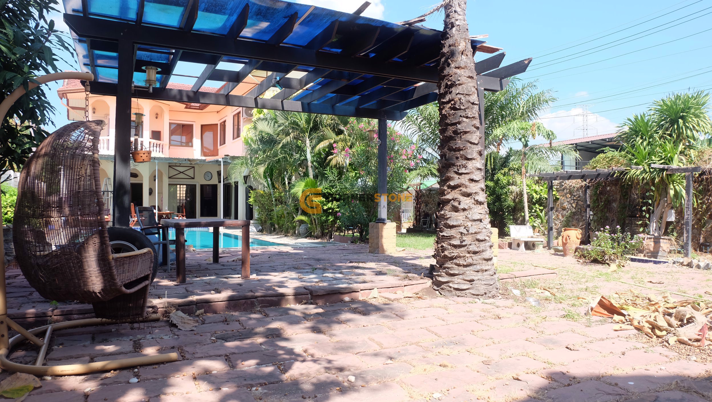 Welcome to this exceptional House – identified as reference number H005642 which is located within East Pattaya, that form part of the Bang Lamung district of Chonburi . This House has an impressive living space spanning 384 Sq.m with a total of 2 Bedrooms and 2 Bathrooms and sits on a land plot size measuring 100 square wah. This property will come Fully Furnished and also features Private Garden, Bathtub/Jacuzzi, Covered Outdoor Terrace,