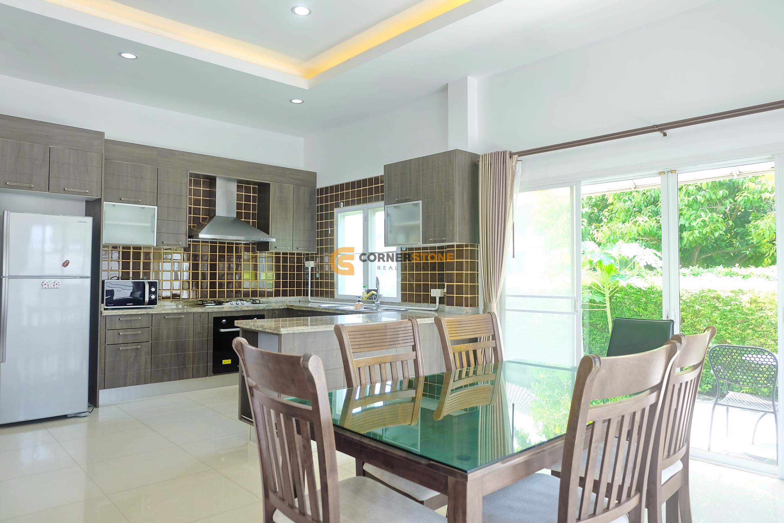Situated within a village called Baan Panalee. This House has an impressive living space spanning 190 Sq.m with a total of 3 Bedrooms and 2 Bathrooms and sits on a land plot size measuring 93 square wah. This property will come Fully Furnished and also features Private Garden, Corner Plot, Covered Outdoor Terrace,