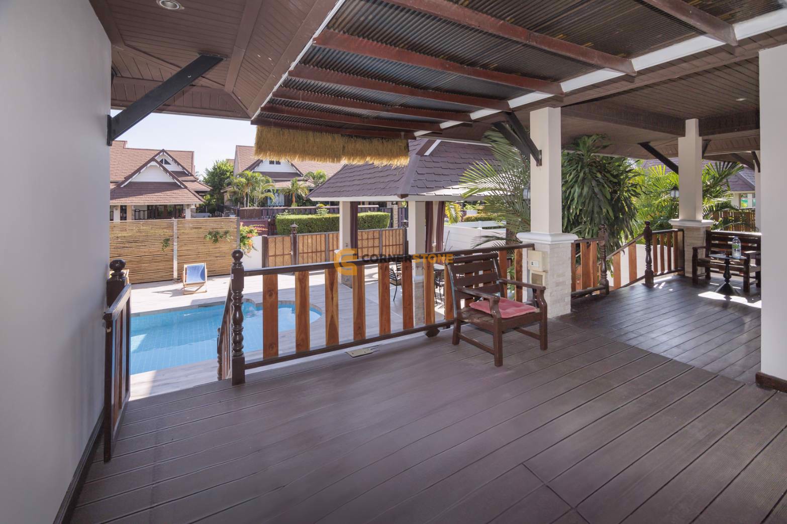 Situated within a village called Dhewee Resort. This House has an impressive living space spanning 220 Sq.m with a total of 3 Bedrooms and 3 Bathrooms and sits on a land plot size measuring 105 square wah. This property will come Fully Furnished and also features Private Garden,