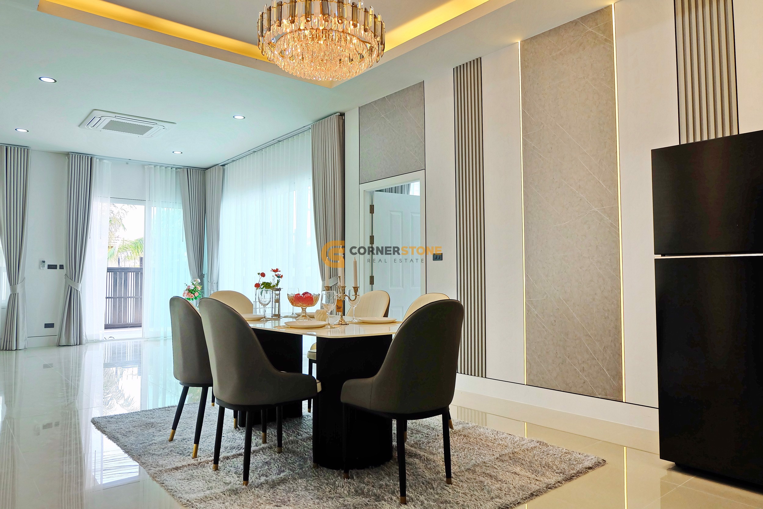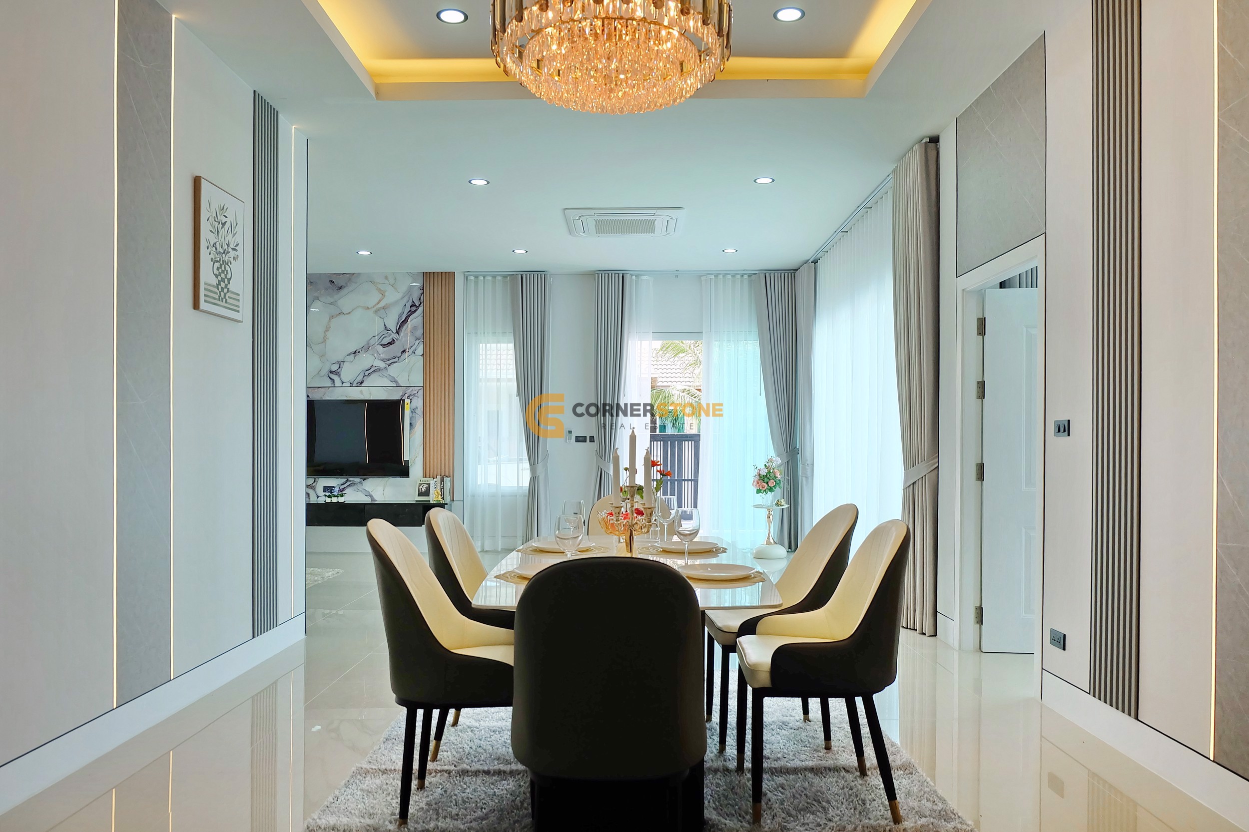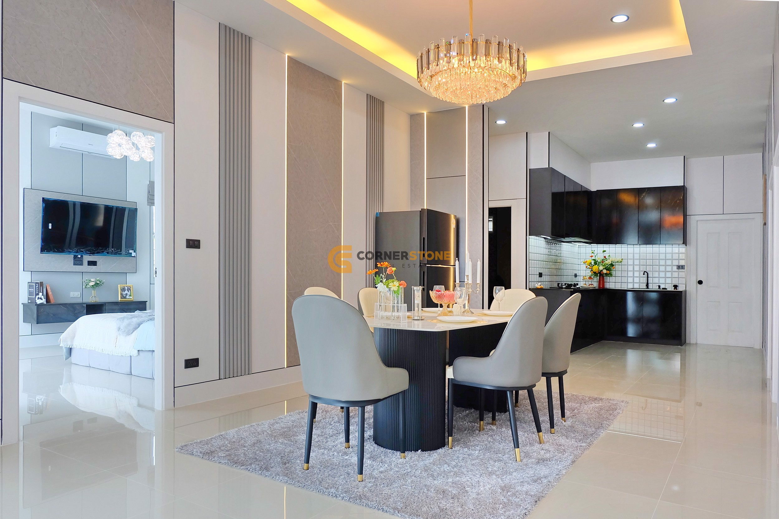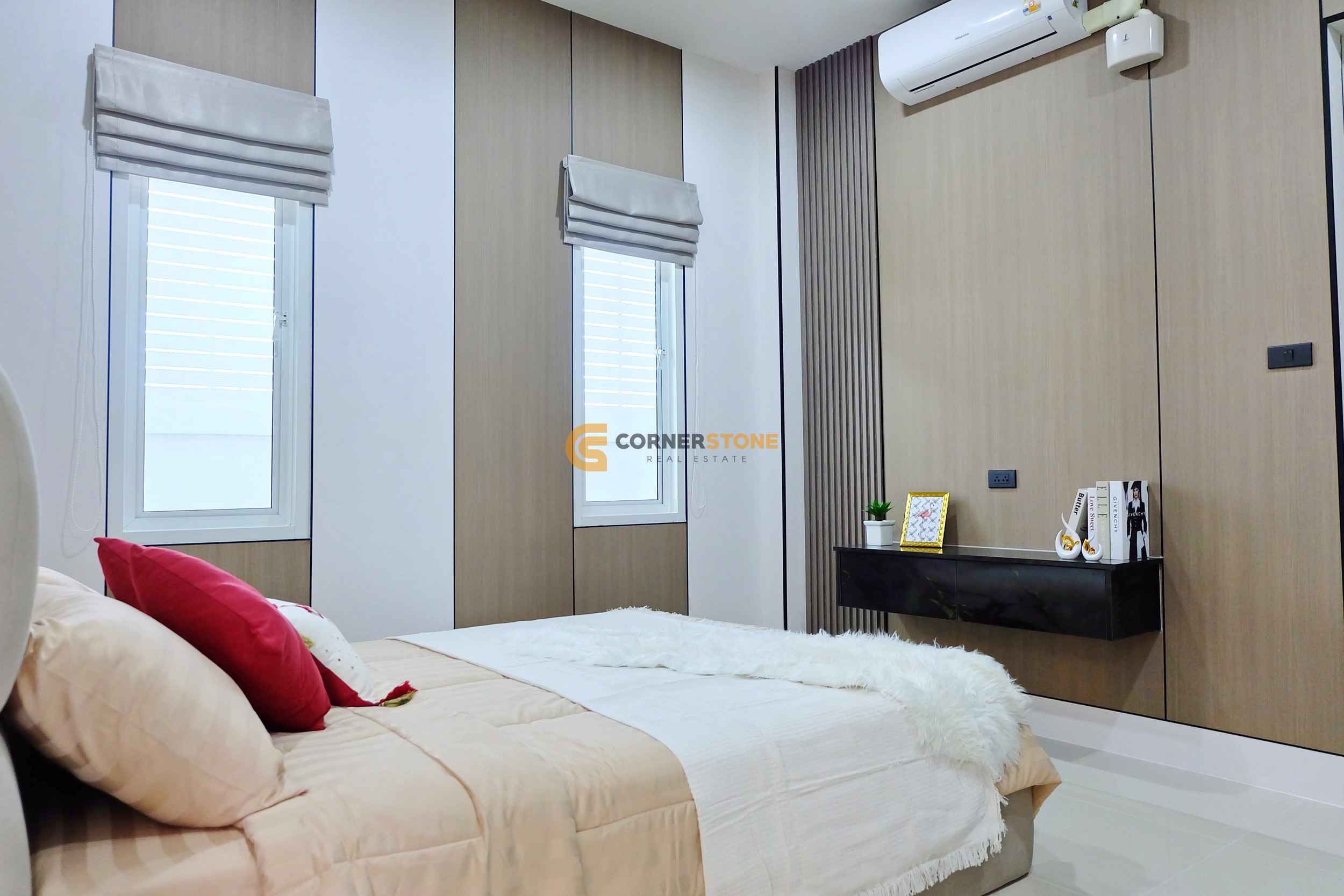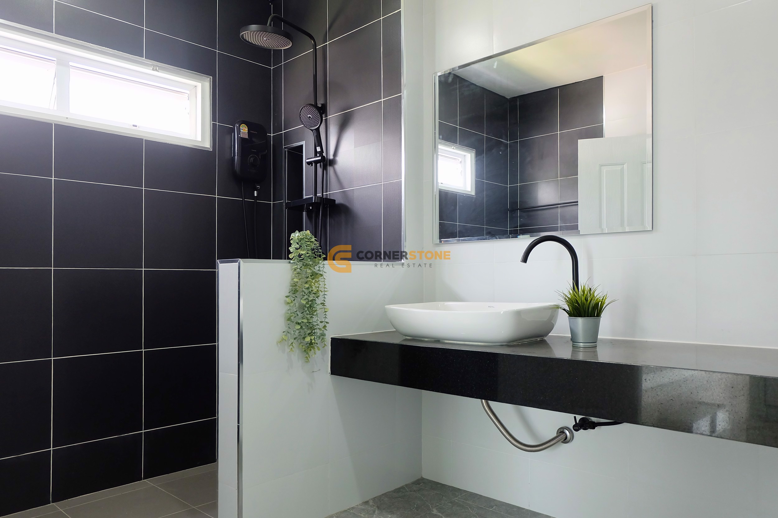 Situated within a village called Garden Ville 2 Huay Yai. This House has an impressive living space spanning 170 Sq.m with a total of 3 Bedrooms and 4 Bathrooms and sits on a land plot size measuring 105 square wah. This property will come Fully Furnished and also features Private Garden,