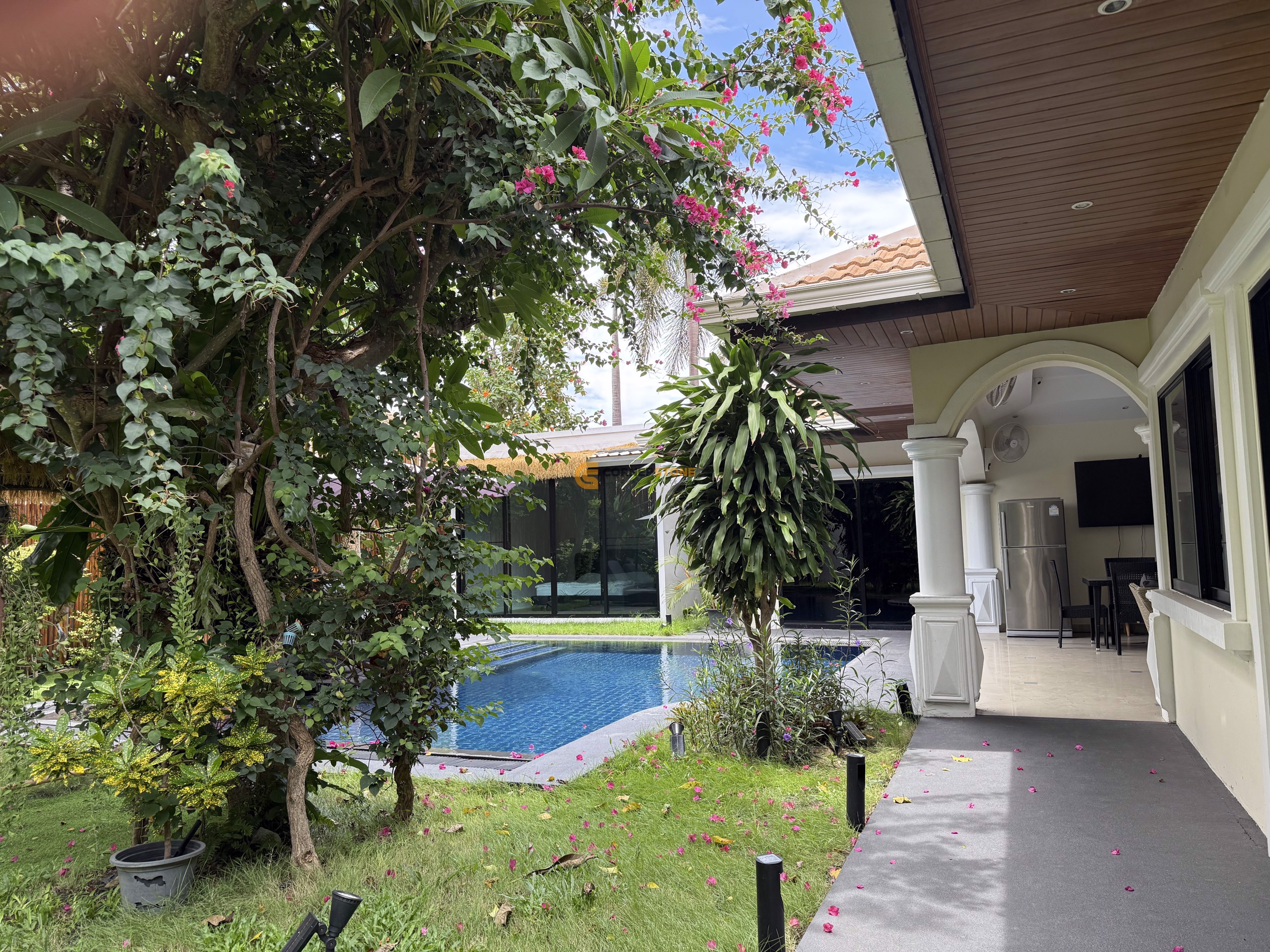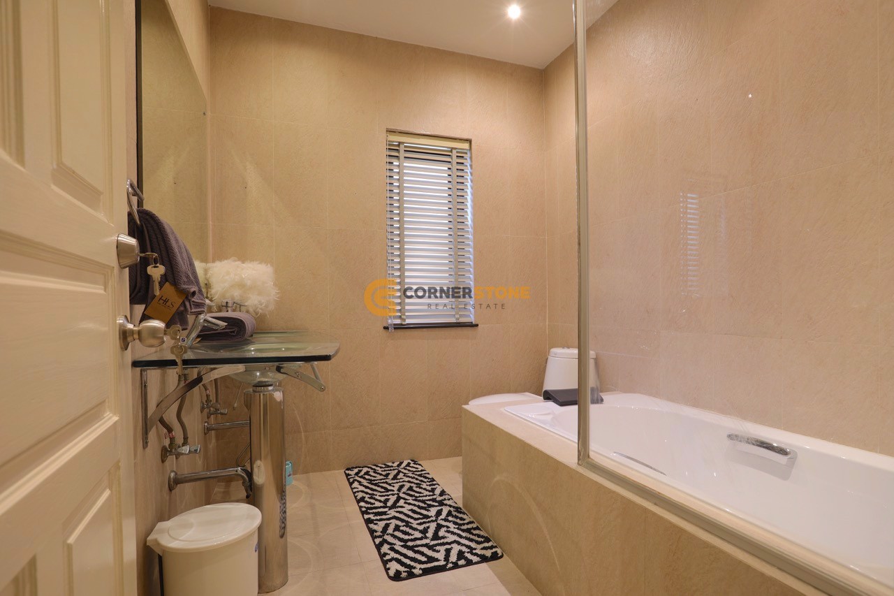 Situated within a village called Jomtien Park Villas. This House has an impressive living space spanning 200 Sq.m with a total of 3 Bedrooms and 4 Bathrooms and sits on a land plot size measuring 141 square wah. This property will come Fully Furnished and also features Private Garden, Bathtub/Jacuzzi, Covered Outdoor Terrace,