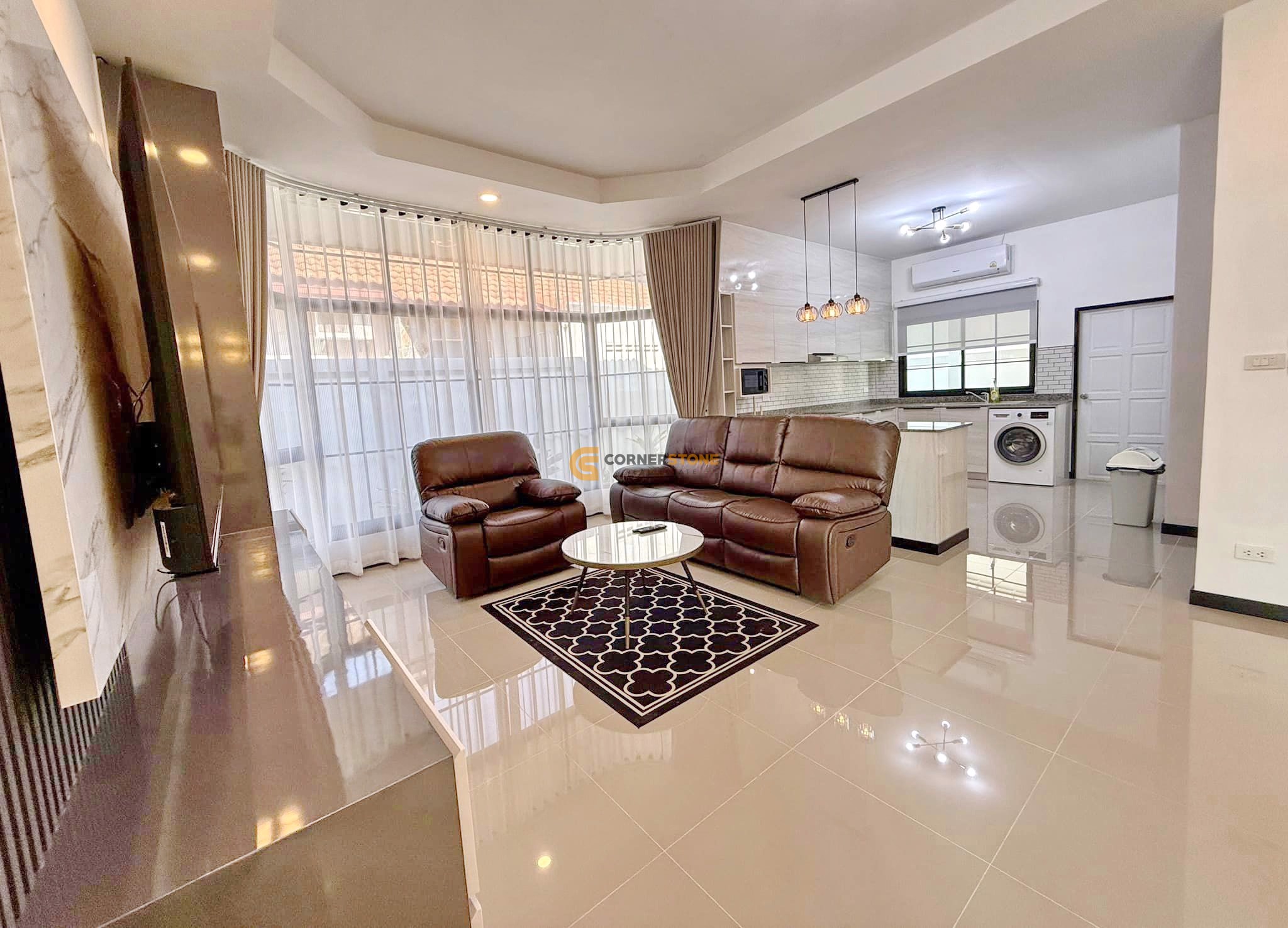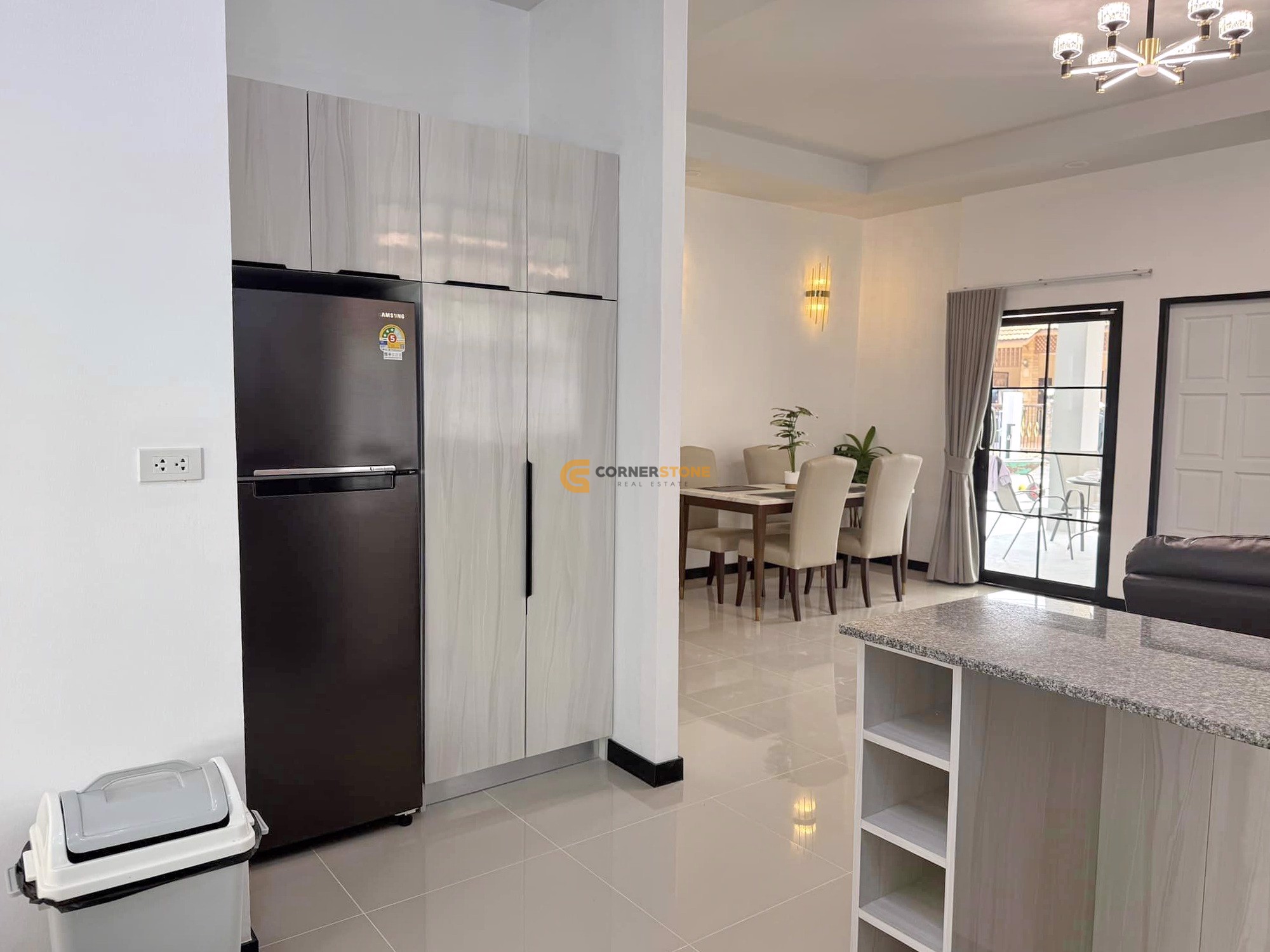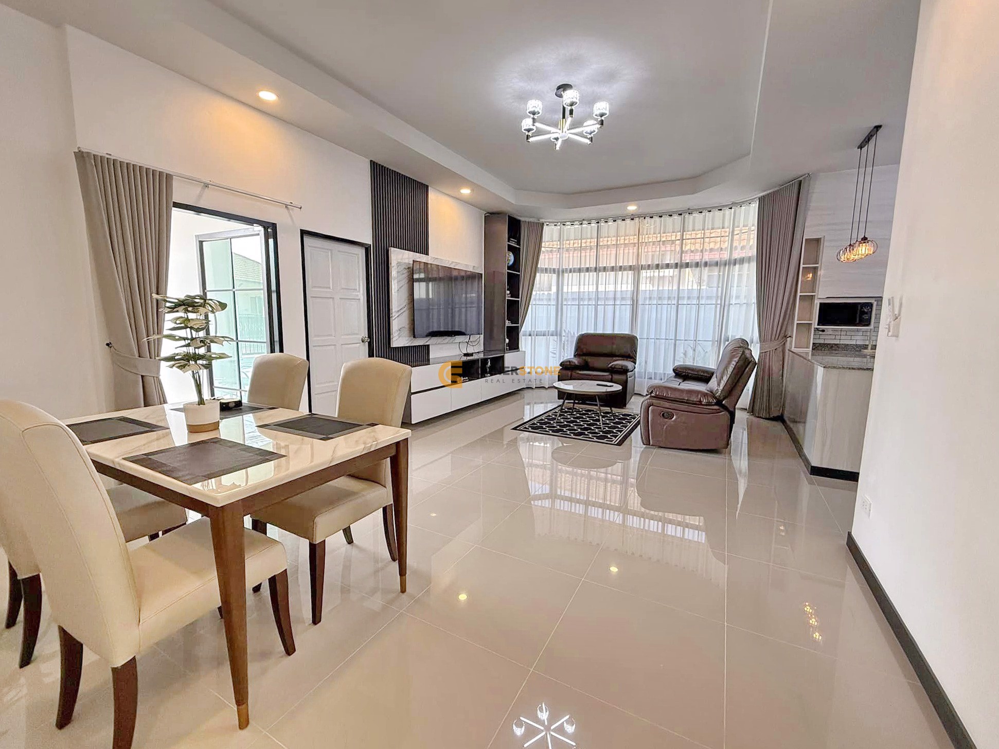 Situated within a village called Pattaya Paradise Village 2. This House has an impressive living space spanning 120 Sq.m with a total of 3 Bedrooms and 2 Bathrooms and sits on a land plot size measuring 80 square wah. This property will come Fully Furnished and also features Private Garden,