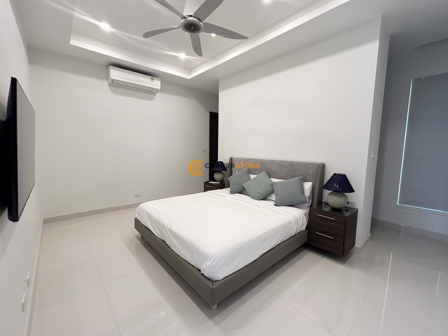 Situated within a village called The Hacienda Villas Mabprachan. This House has an impressive living space spanning 270 Sq.m with a total of 3 Bedrooms and 4 Bathrooms and sits on a land plot size measuring 105 square wah. This property will come Fully Furnished and also features Private Garden, Electric Gates,