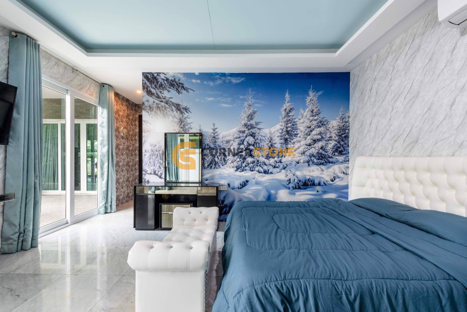 Situated within a village called Mountain Village 1. This House has an impressive living space spanning 290 Sq.m with a total of 4 Bedrooms and 5 Bathrooms and sits on a land plot size measuring 125 square wah. This property will come Fully Furnished and also features Private Garden, Bathtub/Jacuzzi, Covered Outdoor Terrace,