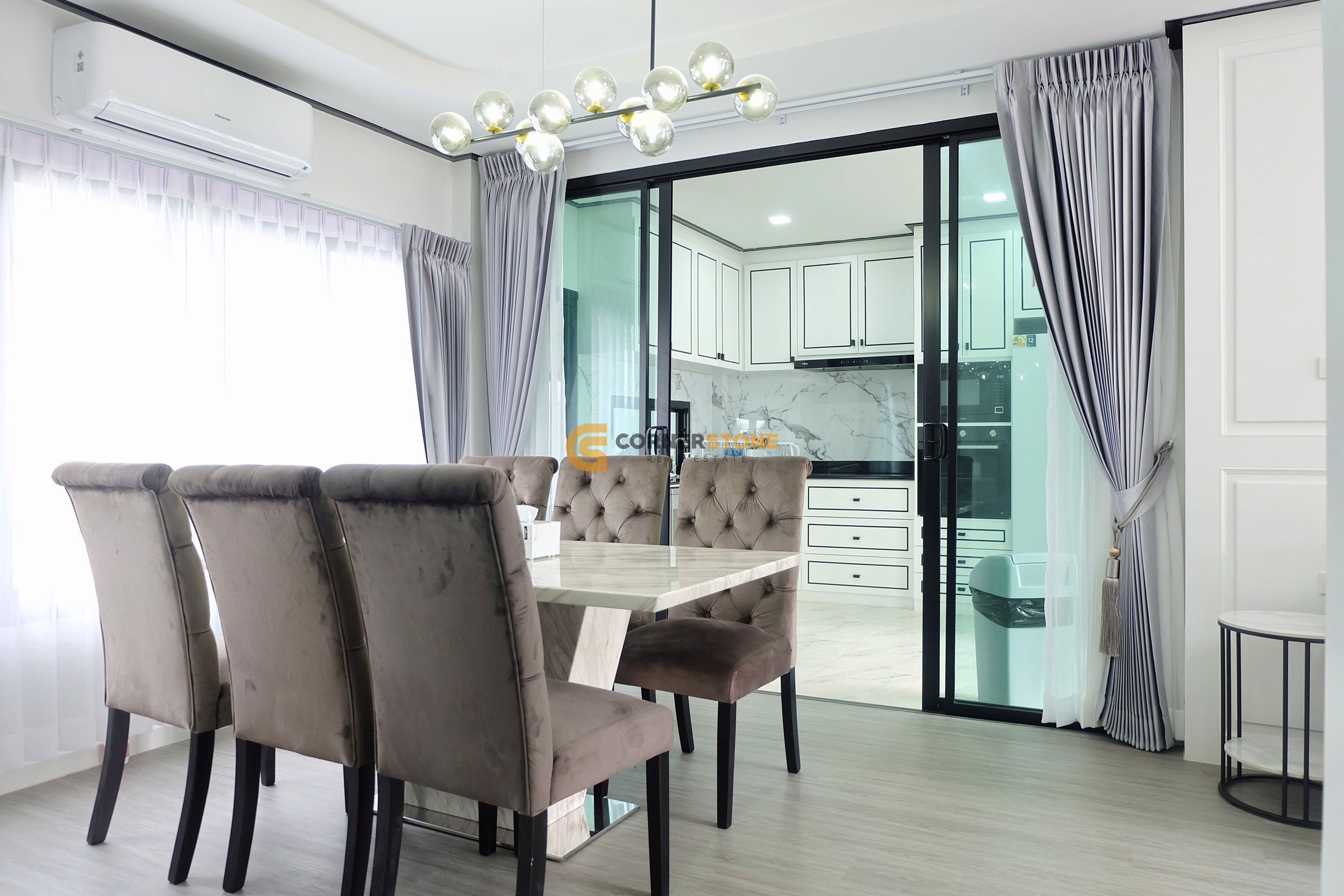 Situated within a village called Rattanakorn Village 20. This House has an impressive living space spanning 250 Sq.m with a total of 6 Bedrooms and 5 Bathrooms and sits on a land plot size measuring 130 square wah. This property will come Fully Furnished and also features Private Garden, EV Charge Point, Corner Plot, Guest House