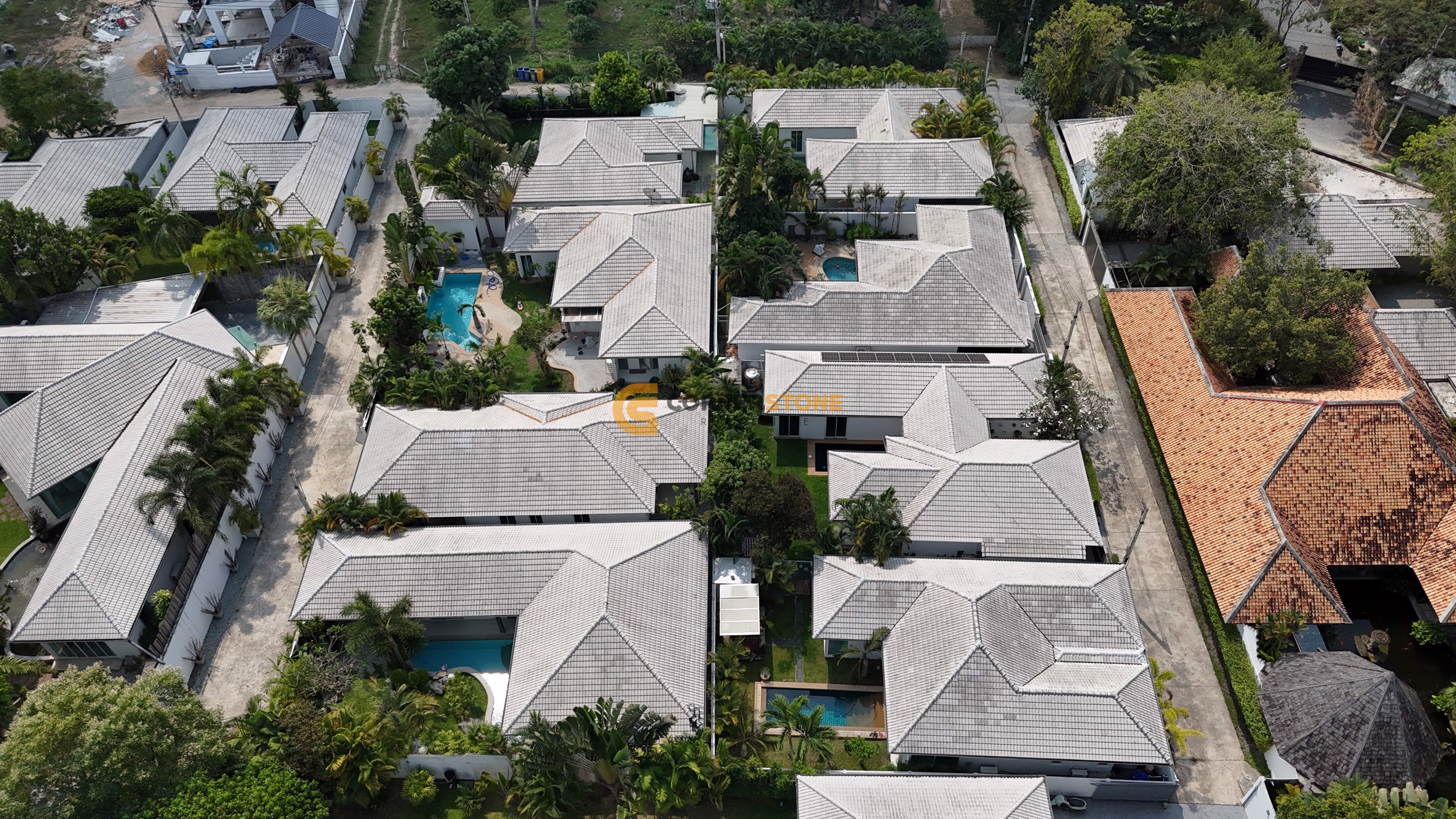 A small private pool complex of just 4 private houses. The location is very close to the Huay Yai junction for the Bangkok to Rayong motorway (No 7).